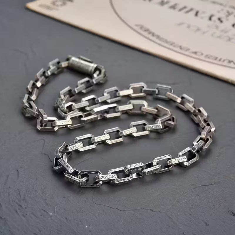 Collier Hip-Hop Vintage avec un Design Européen et Américain Solide et un Motif de Vigne Unique.